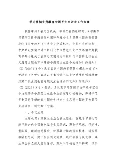 / 【七哥公文】2024年:学习贯彻主题教育专题民主生活会工作方案+更多免费公文+VX:QiGeGongWen2024