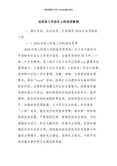 / 【七哥公文】2024年:在财政工作会议上的讲话提纲 (3)+更多免费公文+VX:QiGeGongWen2024