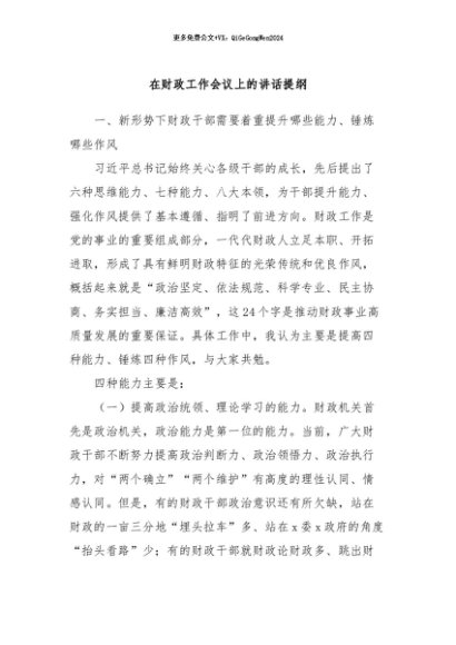 / 【七哥公文】2024年:在财政工作会议上的讲话提纲 (1)+更多免费公文+VX:QiGeGongWen2024