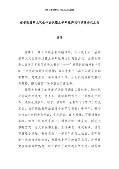 【七哥公文】2024年:在省政府第九次全体会议暨上半年经济运行调度会议上的讲话+更多免费公文+VX:QiGeGongWen2024