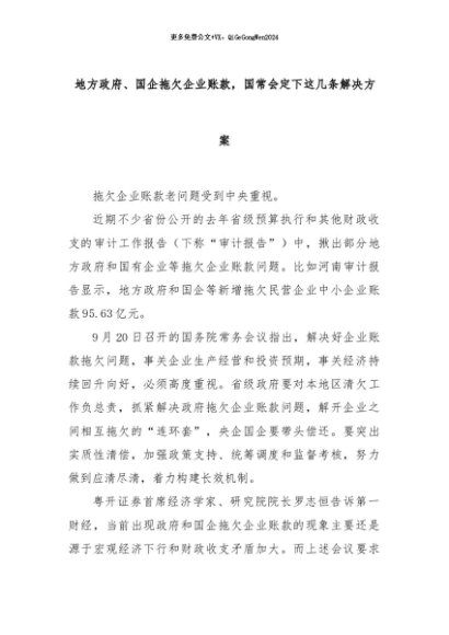 【七哥公文】2024年:地方政府、国企拖欠企业账款,国常会定下这几条解决方案+更多免费公文+VX:QiGeGongWen2024