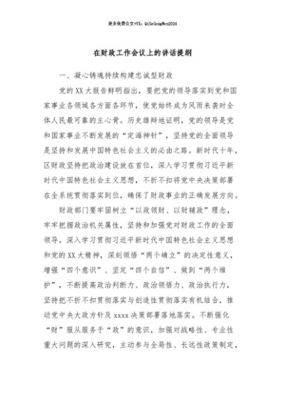 / 【七哥公文】2024年:在财政工作会议上的讲话提纲 (2)+更多免费公文+VX:QiGeGongWen2024