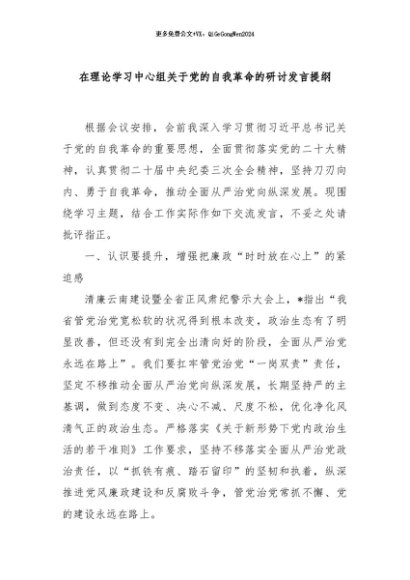 / 【七哥公文】2024年:在理论学习中心组关于党的自我革命的研讨发言提纲+更多免费公文+VX:QiGeGongWen2024