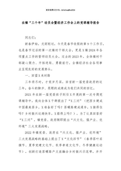/ 【七哥公文】2024年:在镇“三个年”动员会暨经济工作会上的党课辅导报告+更多免费公文+VX:QiGeGongWen2024