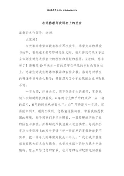 / 【七哥公文】2024年:在退休教师欢送会上的发言+更多免费公文+VX:QiGeGongWen2024