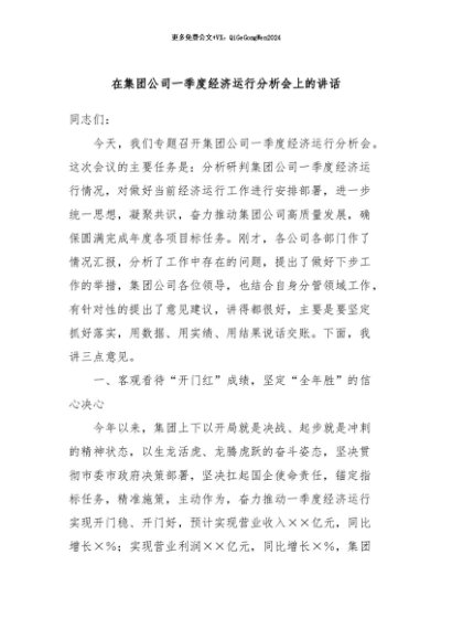 / 【七哥公文】2024年:在集团公司一季度经济运行分析会上的讲话+更多免费公文+VX:QiGeGongWen2024