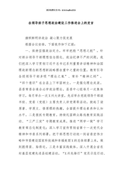 / 【七哥公文】2024年:在领导班子思想政治建设工作推进会上的发言+更多免费公文+VX:QiGeGongWen2024