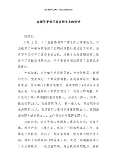 / 【七哥公文】2024年:在领导干部任前谈话会上的讲话+更多免费公文+VX:QiGeGongWen2024