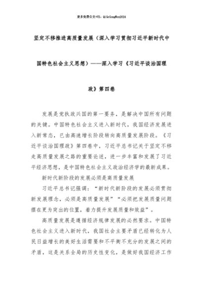 【七哥公文】2024年:坚定不移推进高质量发展(深入学习贯彻习近平新时代中国特色社会主义思想)——深入学习《习近平谈治国理政》第四卷+更多免费公文+VX:QiGeGongWen2024