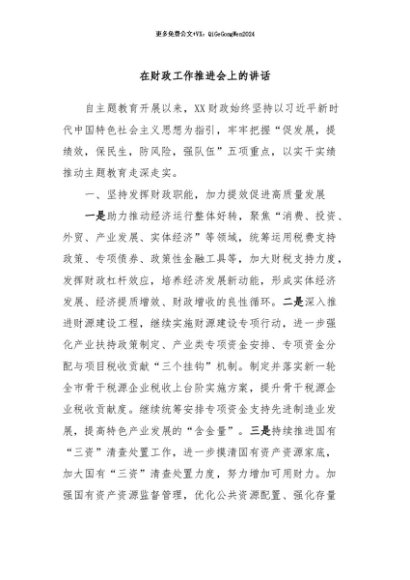 / 【七哥公文】2024年:在财政工作推进会上的讲话+更多免费公文+VX:QiGeGongWen2024