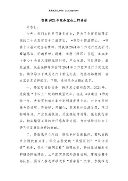 / 【七哥公文】2024年:在镇2024年度务虚会上的讲话+更多免费公文+VX:QiGeGongWen2024