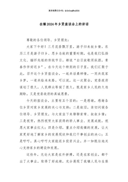 / 【七哥公文】2024年:在镇2024年乡贤座谈会上的讲话+更多免费公文+VX:QiGeGongWen2024