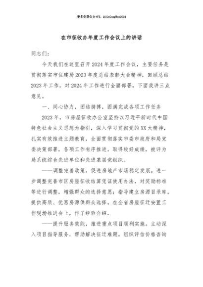 / 【七哥公文】2024年:在市征收办年度工作会议上的讲话+更多免费公文+VX:QiGeGongWen2024