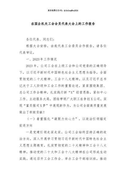 / 【七哥公文】2024年:在国企机关工会会员代表大会上的工作报告.+更多免费公文+VX:QiGeGongWen2024