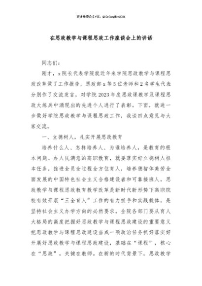 / 【七哥公文】2024年:在思政教学与课程思政工作座谈会上的讲话+更多免费公文+VX:QiGeGongWen2024