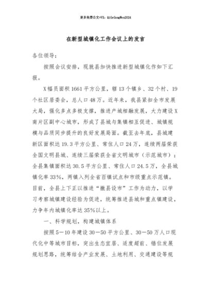 / 【七哥公文】2024年:在新型城镇化工作会议上的发言+更多免费公文+VX:QiGeGongWen2024