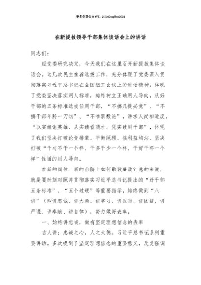 / 【七哥公文】2024年:在新提拔领导干部集体谈话会上的讲话+更多免费公文+VX:QiGeGongWen2024