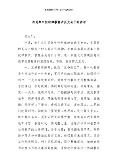 / 【七哥公文】2024年:在局集中性纪律教育动员大会上的讲话+更多免费公文+VX:QiGeGongWen2024