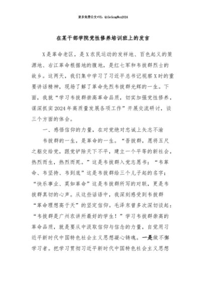 / 【七哥公文】2024年:在某干部学院党性修养培训班上的发言+更多免费公文+VX:QiGeGongWen2024