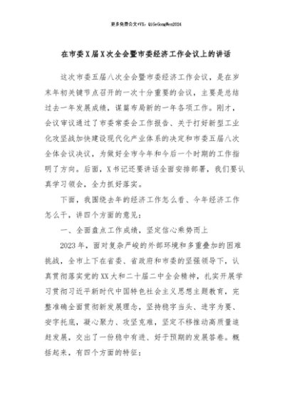 / 【七哥公文】2024年:在市委X届X次全会暨市委经济工作会议上的讲话+更多免费公文+VX:QiGeGongWen2024