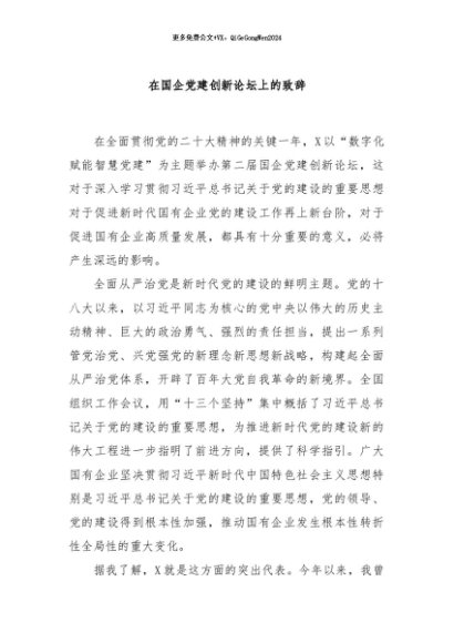 / 【七哥公文】2024年:在国企党建创新论坛上的致辞+更多免费公文+VX:QiGeGongWen2024