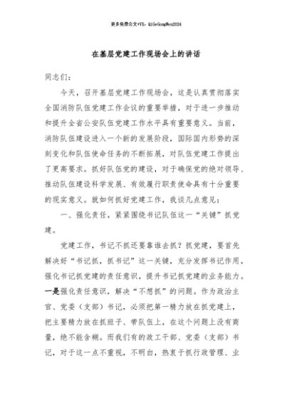 / 【七哥公文】2024年:在基层党建工作现场会上的讲话+更多免费公文+VX:QiGeGongWen2024