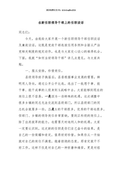/ 【七哥公文】2024年:在新任职领导干部上的任职谈话+更多免费公文+VX:QiGeGongWen2024