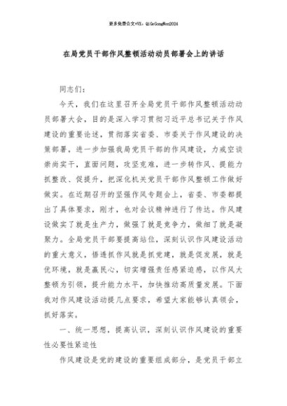 / 【七哥公文】2024年:在局党员干部作风整顿活动动员部署会上的讲话+更多免费公文+VX:QiGeGongWen2024