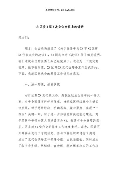 / 【七哥公文】2024年:在区委X届X次全体会议上的讲话+更多免费公文+VX:QiGeGongWen2024