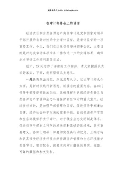 / 【七哥公文】2024年:在审计部署会上的讲话+更多免费公文+VX:QiGeGongWen2024