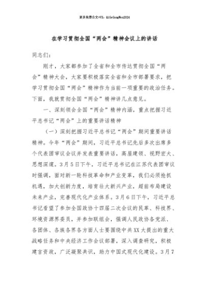 / 【七哥公文】2024年:在学习贯彻全国“两会”精神会议上的讲话+更多免费公文+VX:QiGeGongWen2024