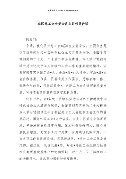 / 【七哥公文】2024年:在区总工会全委会议上的领导讲话+更多免费公文+VX:QiGeGongWen2024