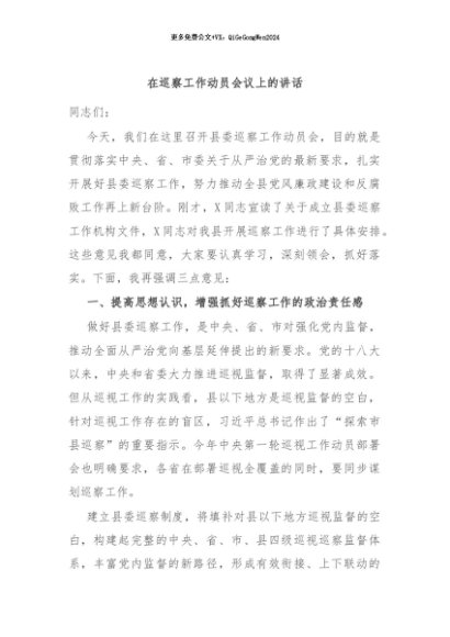 / 【七哥公文】2024年:在巡察工作动员会议上的讲话+更多免费公文+VX:QiGeGongWen2024