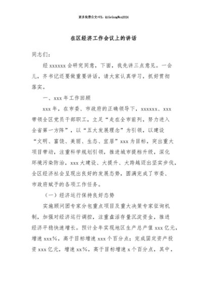 / 【七哥公文】2024年:在区经济工作会议上的讲话+更多免费公文+VX:QiGeGongWen2024