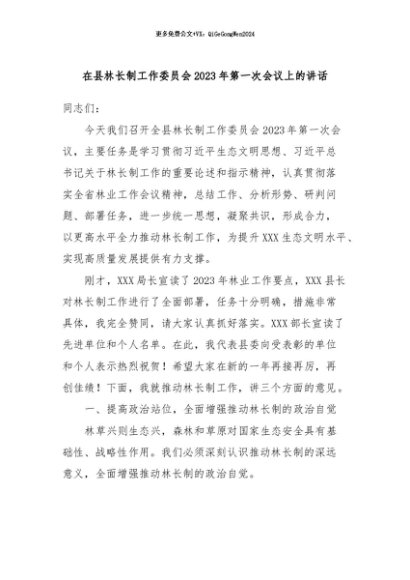 / 【七哥公文】2024年:在县林长制工作委员会2023年第一次会议上的讲话+更多免费公文+VX:QiGeGongWen2024