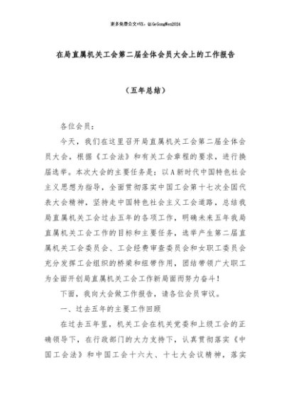 【七哥公文】2024年:在局直属机关工会第二届全体会员大会上的工作报告(五年总结)+更多免费公文+VX:QiGeGongWen2024