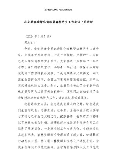 / 【七哥公文】2024年:在全县春季绿化造林暨森林防火工作会议上的讲话+更多免费公文+VX:QiGeGongWen2024