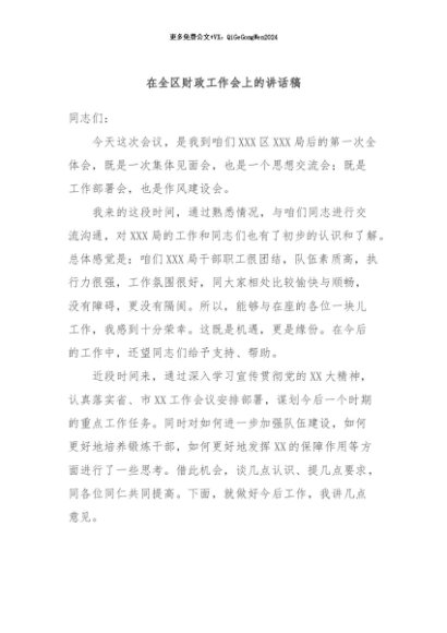 / 【七哥公文】2024年:在全区财政工作会上的讲话稿+更多免费公文+VX:QiGeGongWen2024