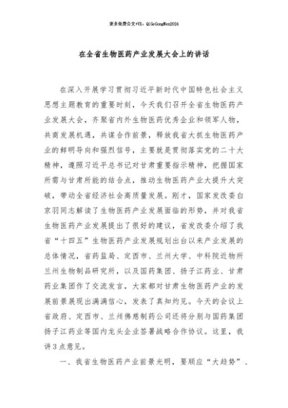 / 【七哥公文】2024年:在全省生物医药产业发展大会上的讲话+更多免费公文+VX:QiGeGongWen2024
