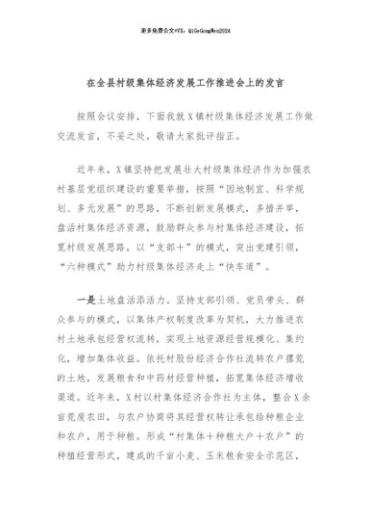 / 【七哥公文】2024年:在全县村级集体经济发展工作推进会上的发言+更多免费公文+VX:QiGeGongWen2024