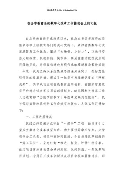 / 【七哥公文】2024年:在全市教育系统数字化改革工作推进会上的汇报+更多免费公文+VX:QiGeGongWen2024