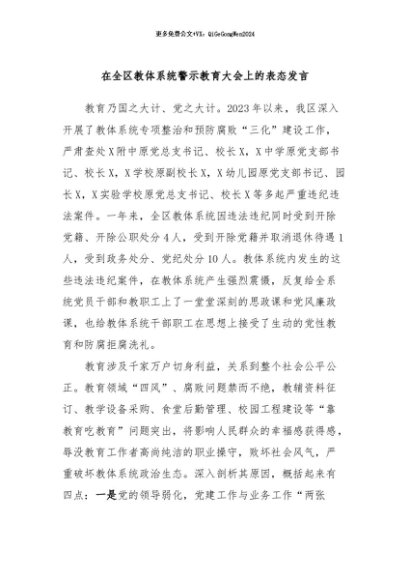 / 【七哥公文】2024年:在全区教体系统警示教育大会上的表态发言+更多免费公文+VX:QiGeGongWen2024