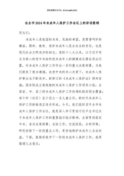 / 【七哥公文】2024年:在全市2024年未成年人保护工作会议上的讲话提纲+更多免费公文+VX:QiGeGongWen2024