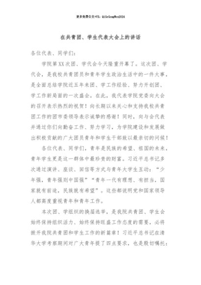 / 【七哥公文】2024年:在共青团、学生代表大会上的讲话+更多免费公文+VX:QiGeGongWen2024