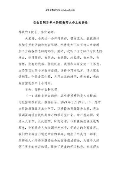 / 【七哥公文】2024年:在全日制自考本科班教师大会上的讲话+更多免费公文+VX:QiGeGongWen2024