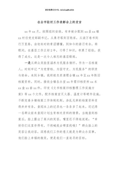 / 【七哥公文】2024年:在全市驻村工作表彰会上的发言 (1)+更多免费公文+VX:QiGeGongWen2024