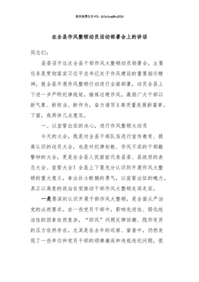 / 【七哥公文】2024年:在全县作风整顿动员活动部署会上的讲话+更多免费公文+VX:QiGeGongWen2024