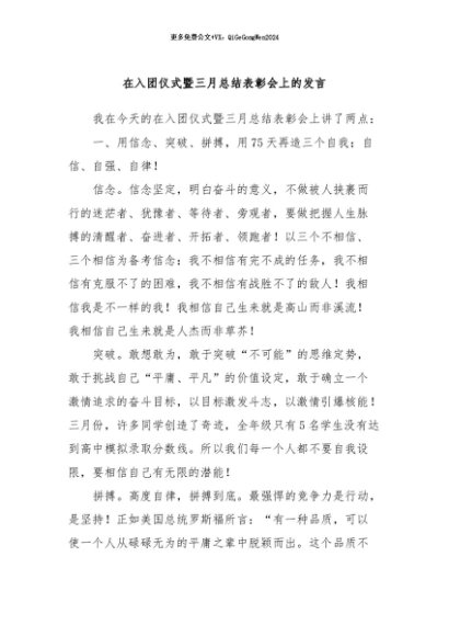 / 【七哥公文】2024年:在入团仪式暨三月总结表彰会上的发言+更多免费公文+VX:QiGeGongWen2024