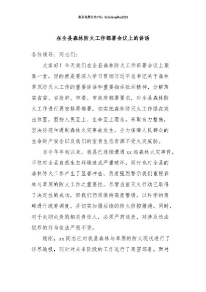 / 【七哥公文】2024年:在全县森林防火工作部署会议上的讲话+更多免费公文+VX:QiGeGongWen2024