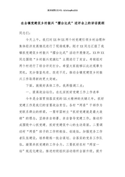 【七哥公文】2024年:在全镇党建促乡村振兴“擂台比武”述评会上的讲话提纲+更多免费公文+VX:QiGeGongWen2024